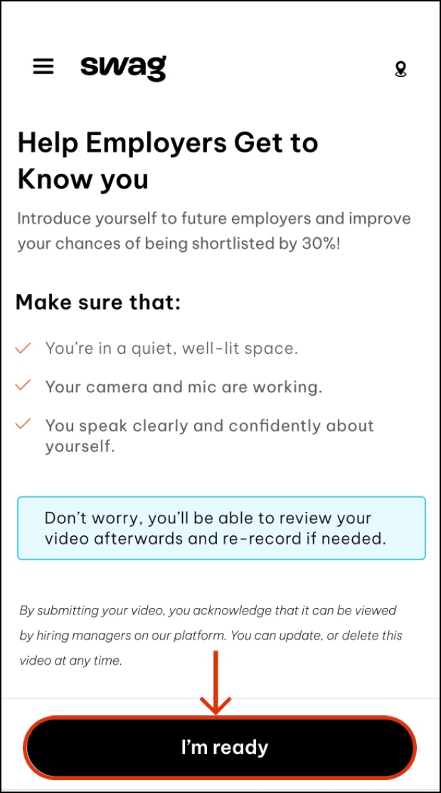 - Read the instructions on the Help Employers Get to Know you page then tap I'm ready.