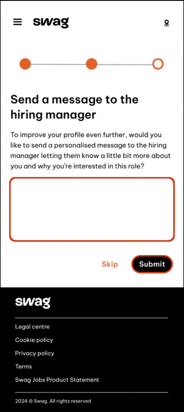 - (Optional) Enter your message to the hiring manager in the text box then tap Submit (otherwise, tap Skip).