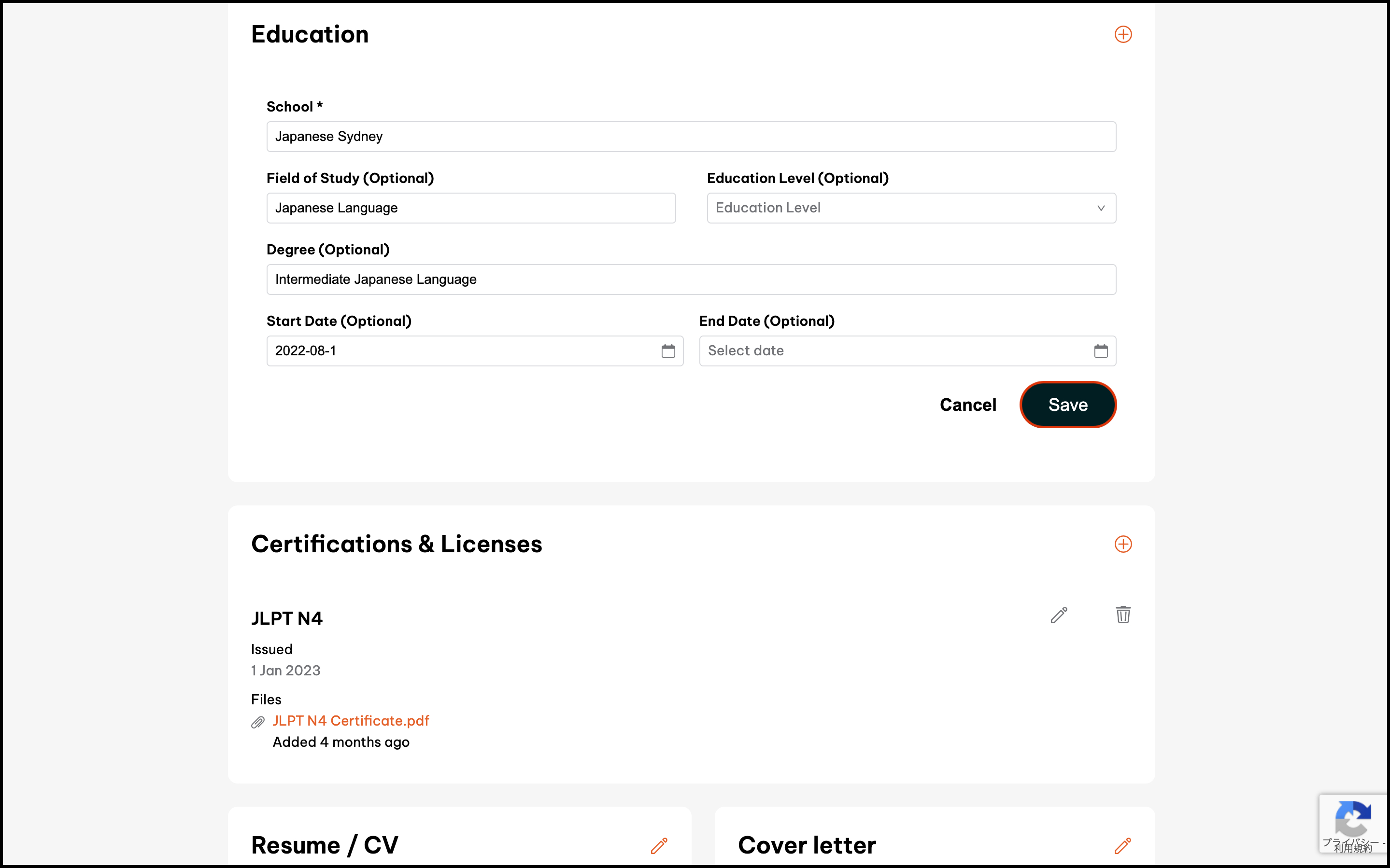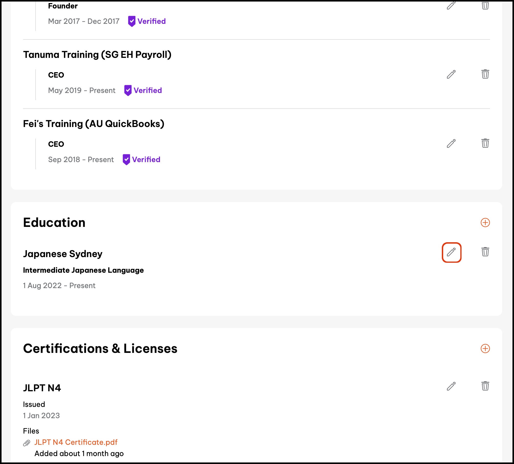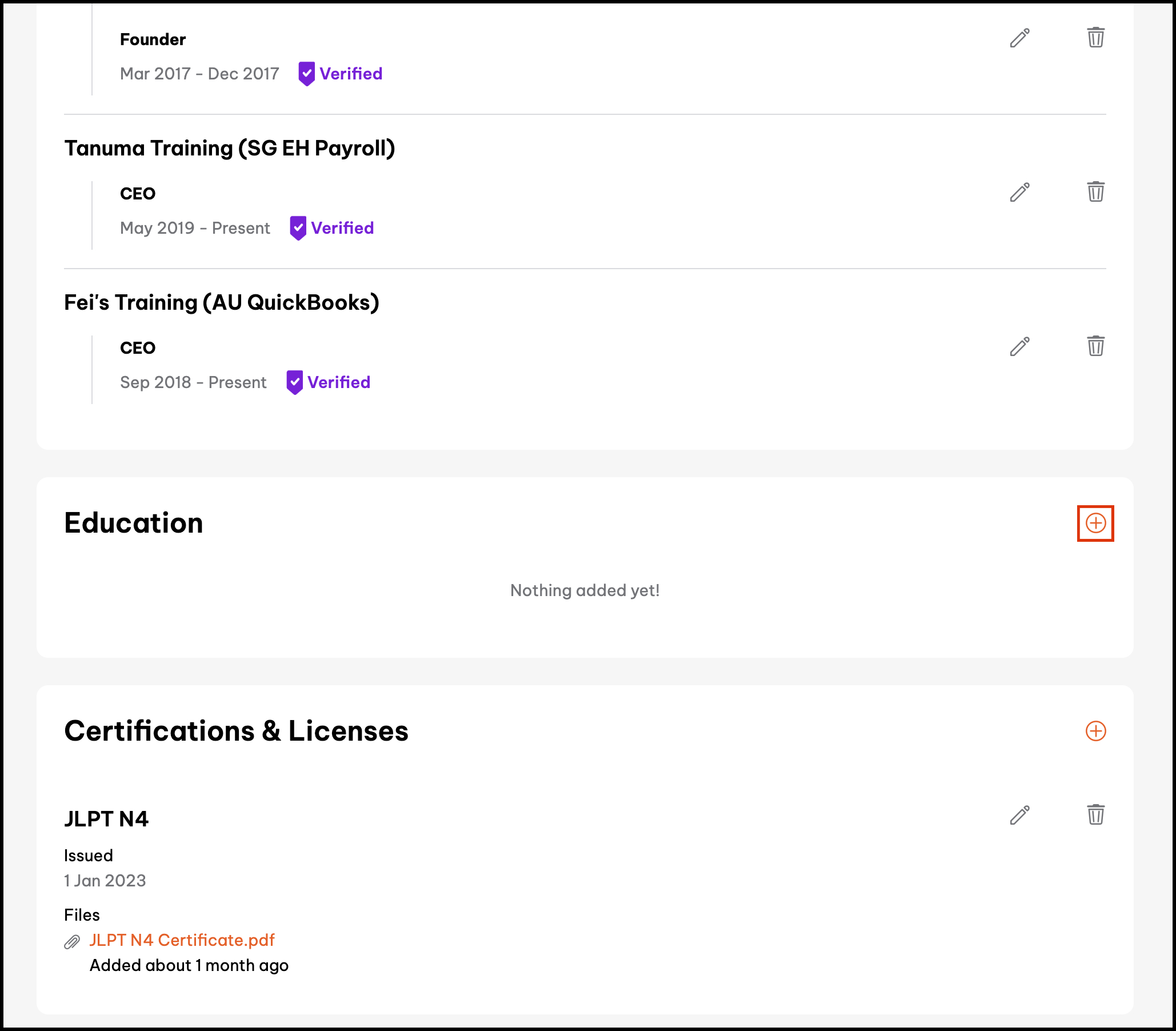 - Click the button in the Education section.